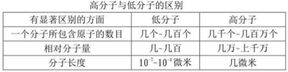 1、高(gao)分(fen)子(zi)與(yu)低分子(zi)的差彆(bie)